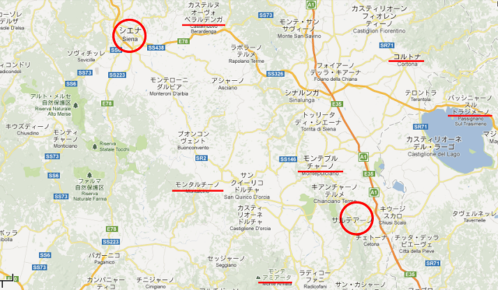 シエナ県の南東。モンテプルチアーノよりもさらに先のサルテアーノ。シラーの生産の盛んなコルトーナもそれほど遠くありません。